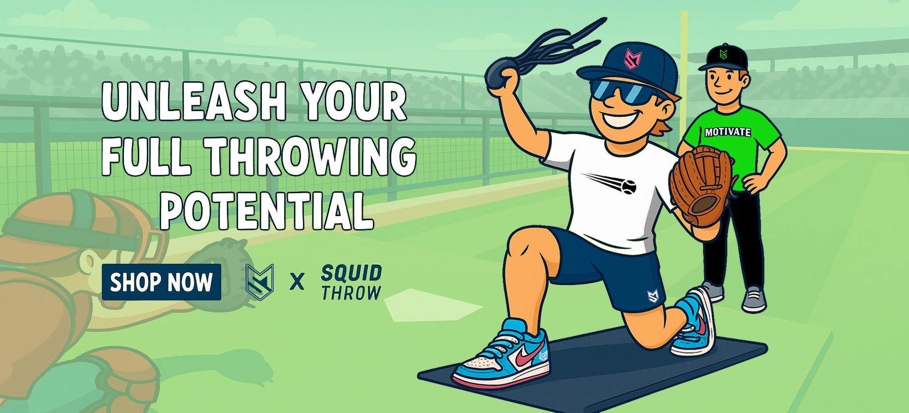 Motivate Sportz is proud to partner with Squid Throw, the ultimate throwing trainer trusted by athletes and coaches who are serious about improving arm strength, mechanics, and control. Designed to build efficient movement patterns through dynamic resistance training, the Squid Throw helps players develop consistency, endurance, and confidence with every rep. Enjoy 10% off as Motivate Sportz customers.